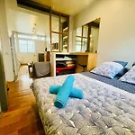 Deze accommodatie is ingericht met een bank en een bureau en biedt moderne faciliteiten zoals een TV en een flatscreen TV met satellietzenders. Dit appartement heeft 1 slaapkamer met veren kussens. Een badkamer is uitgerust met een apart toilet en een badkuip, terwijl een haardroger en handdoeken er ook aanwezig zijn.